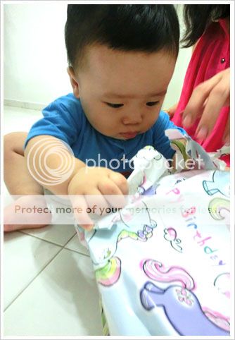 小超人很认真的在开礼物